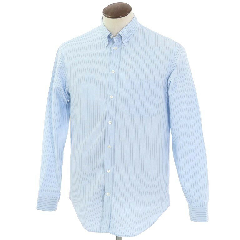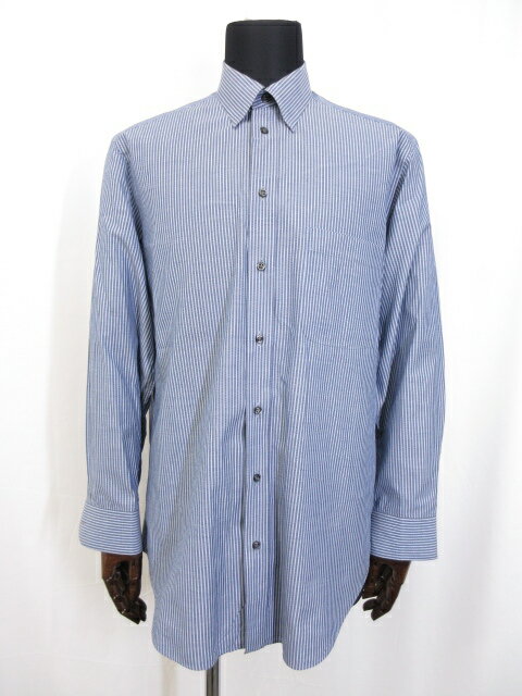 【SALE15倍】【中古】アルマーニコレツィオーニ ARMANI COLLEZIONI ストライプ柄 コットン スナップダウン ドレスシャツ ブルー×グレー×ブラック【サイズ41】【BLU】【S/S/A/W】【状態ランクB】【メンズ】【10601-955852】[2101APD]