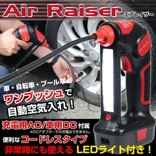 充電式電動エアーコンプレッサー エアレイザー 軽量・手軽に操作 大きなコンプレッサーをコンパクトにまとめたエアレイザー。