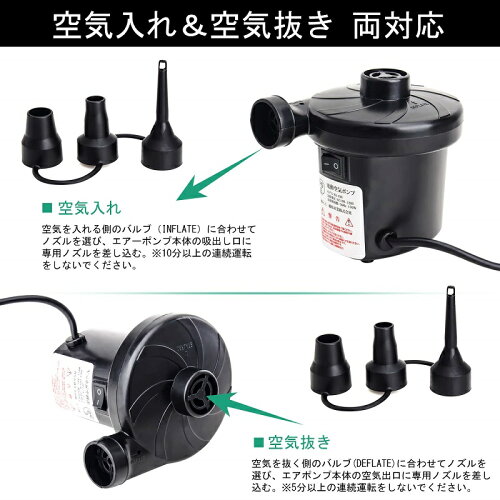 家庭用にオススメ! 空気入れと空気抜きの二つ使い方! 一つスイッチを押すだけ、ON/OFFが切り替えます。