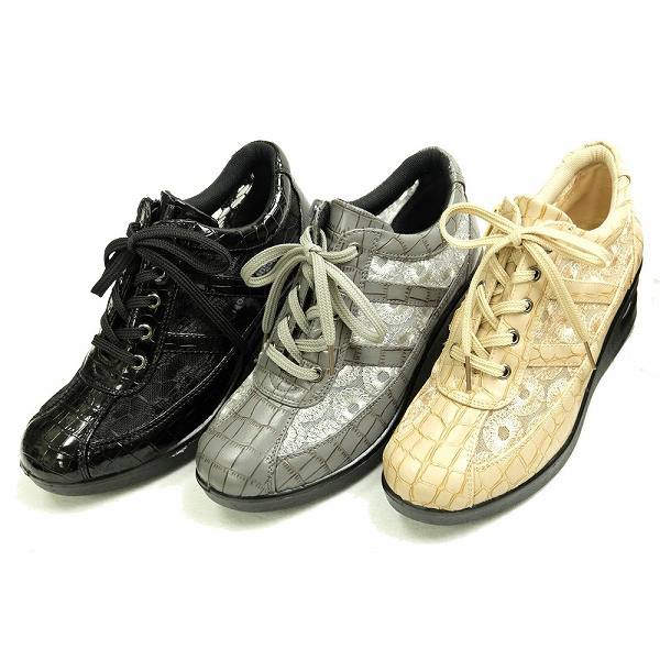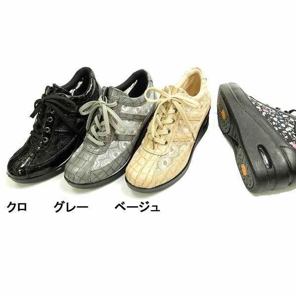 スニーカー レディース ローカット 厚底 エアソール エアクッション コンフォートシューズ 幅広 3E 黒 グレー ベージュ ミセス レディーススニーカー 紐あり