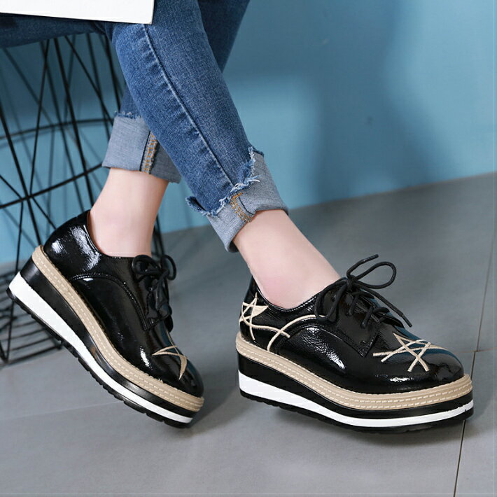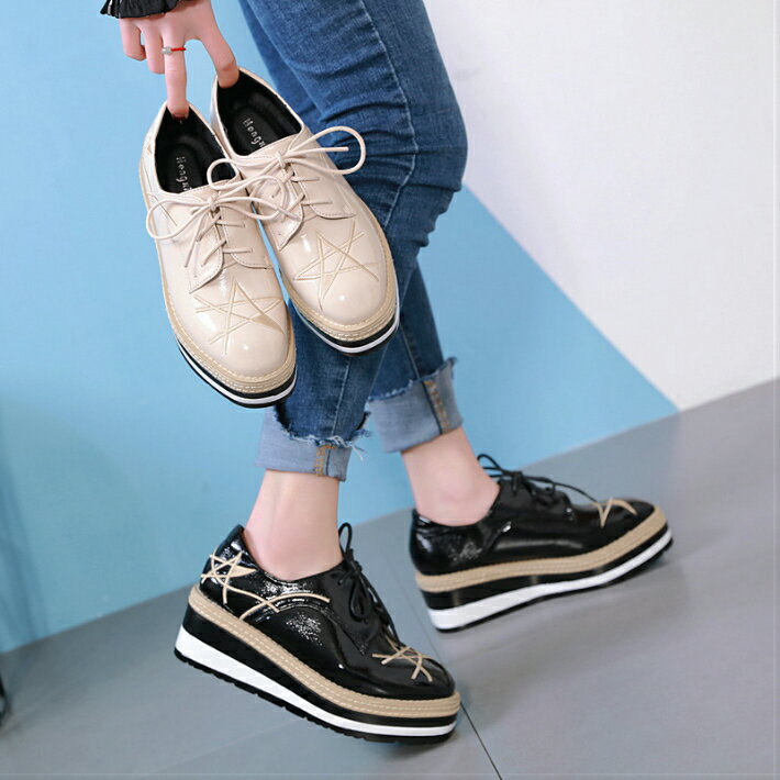 星柄 レディース シューズ 靴 厚底スニーカーインヒールスニーカー オックスフォード ウェッジソール レースアップ パンプス レディース ブラック ベージュ 厚底ローファー 靴 韓国 学生靴 通学 22.5 23 23.5 24 24.5